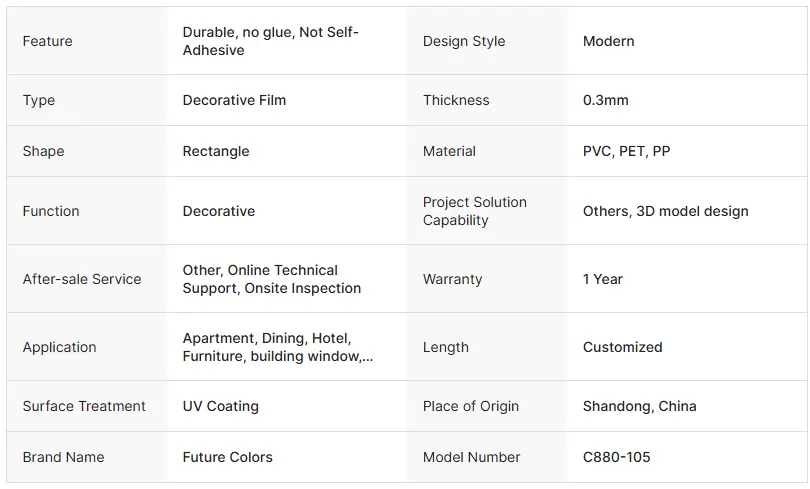 Η σύγχρονη μεμβράνη συμπαγούς χρωμάτων είναι ένα διακοσμητικό υλικό φιλμ που χρησιμοποιεί πλαστικό υψηλού μοριακού ως υλικό βάσης. Μετά τη θεραπεία του χρωματισμού και της επίστρωσης, επιτυγχάνει προσκόλληση μέσω της "διαδικασίας κυψέλης" (χύτευση προσρόφησης κενού). Διαθέτει "ομοιόμορφο χρώμα, ισχυρή πλαστικότητα και υψηλή σχέση κόστους-αποτελεσματικότητας" και χρησιμοποιείται ευρέως σε τομείς όπως έπιπλα, διακόσμηση και συσκευασία. Είναι ένα από τα συνήθως χρησιμοποιούμενα υλικά στο σύγχρονο σχεδιασμό μινιμαλιστικού στυλ.
